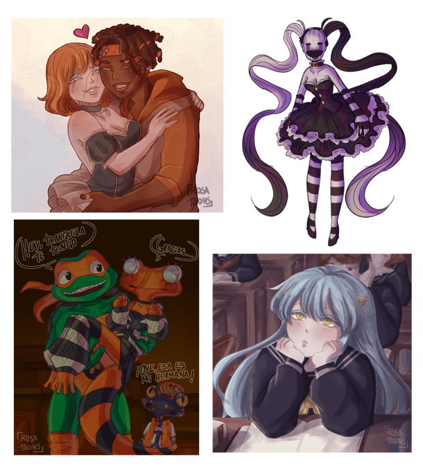 - The delay period for a commission is up to 2 weeks or less (depending on demand).- Payments are only accepted through Paypal, Ko-fi or bank transfer (the latter only in the case of Argentina).- Half of the payment must be made before starting the order and the other half at the end.- The commissions made are only for personal use, in the case of wanting their commercial use, you must pay double the established price.